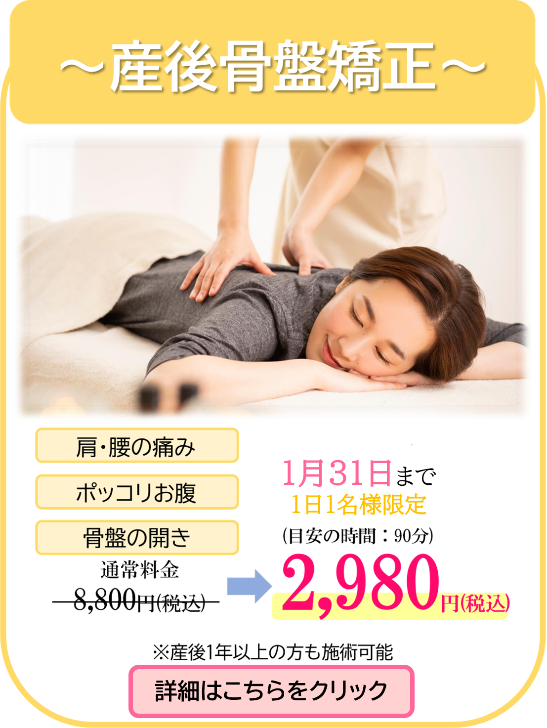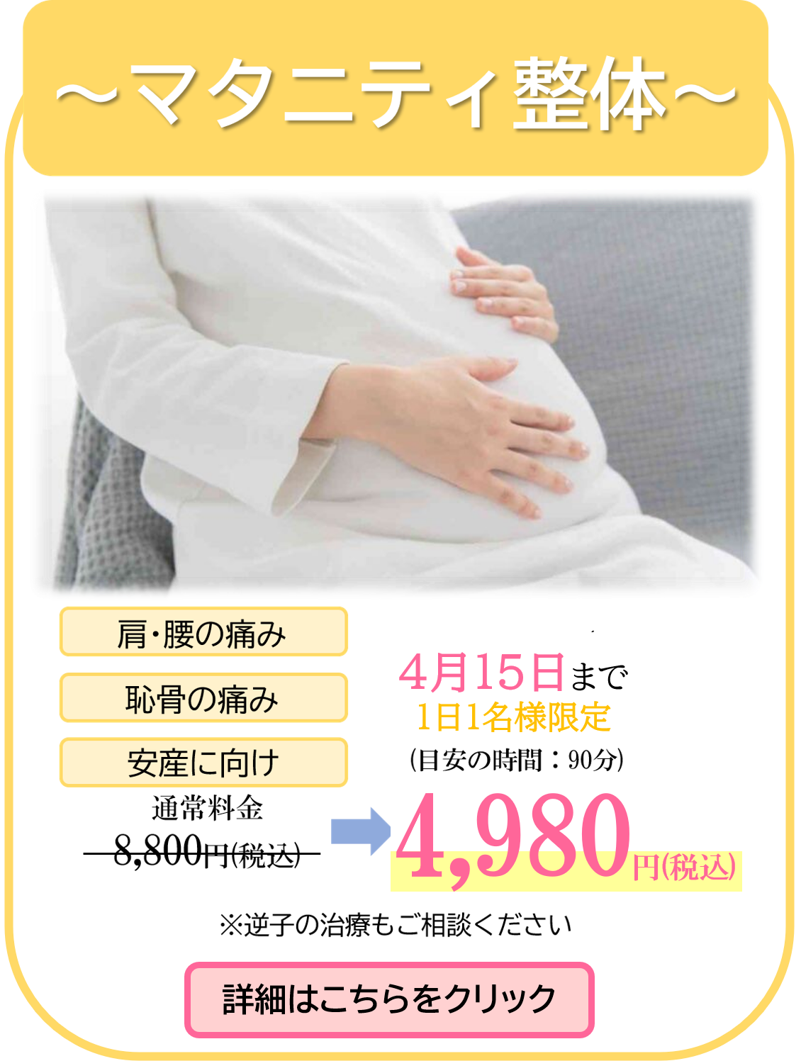 ただし、施術時に同室で立ち会うことはできません。 - 赤ちゃん連れでも大丈夫ですか?