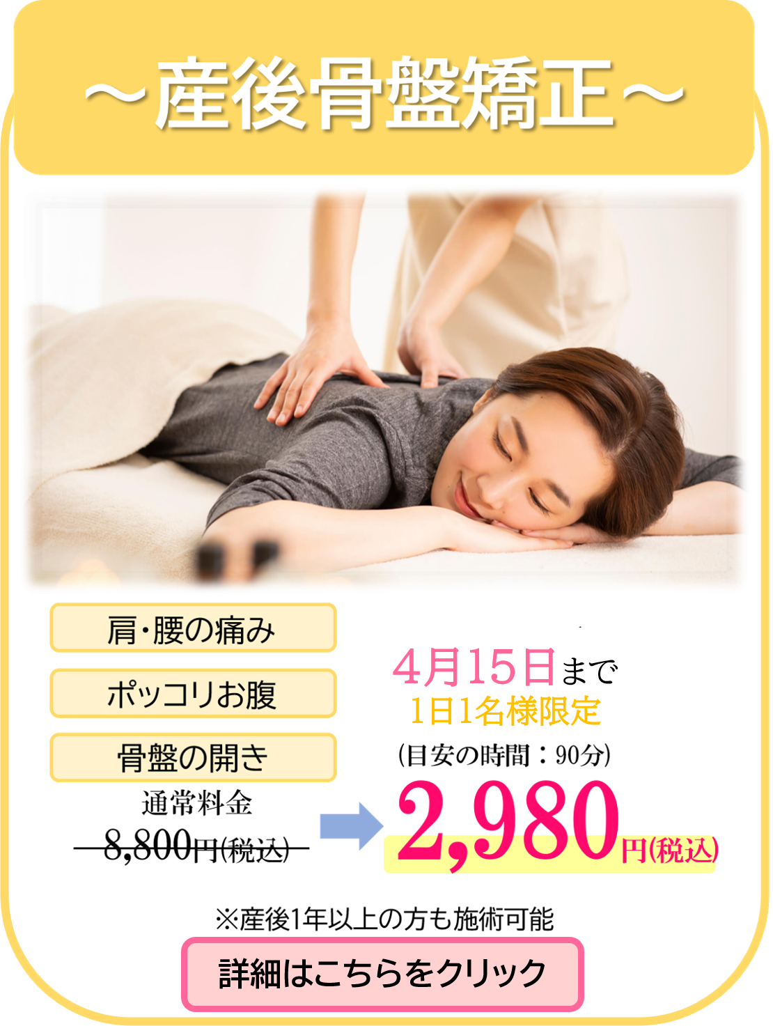 - 基本的な施術時間は40~50分です。
