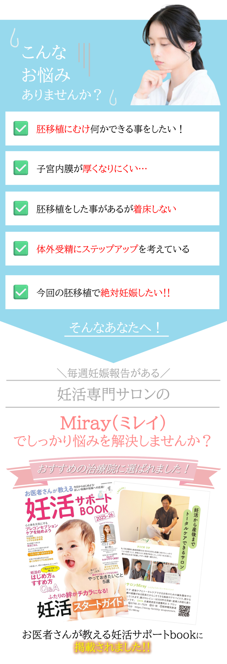 鍼灸整体サロンMiray-ミレイ-│西宮市の不妊改善妊活整体・産後骨盤矯正│女性の為のサロン