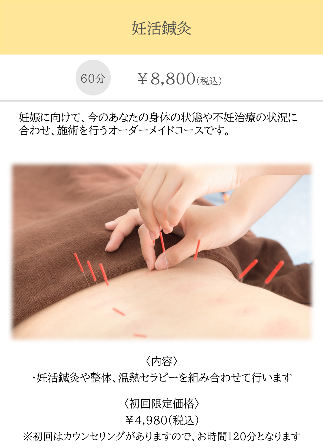 と考えて、必死に専門知識を学んで施術法を身につけた「妊娠するためのカラダづくり」で不妊に悩むみなさんの妊活をサポートいたします。
